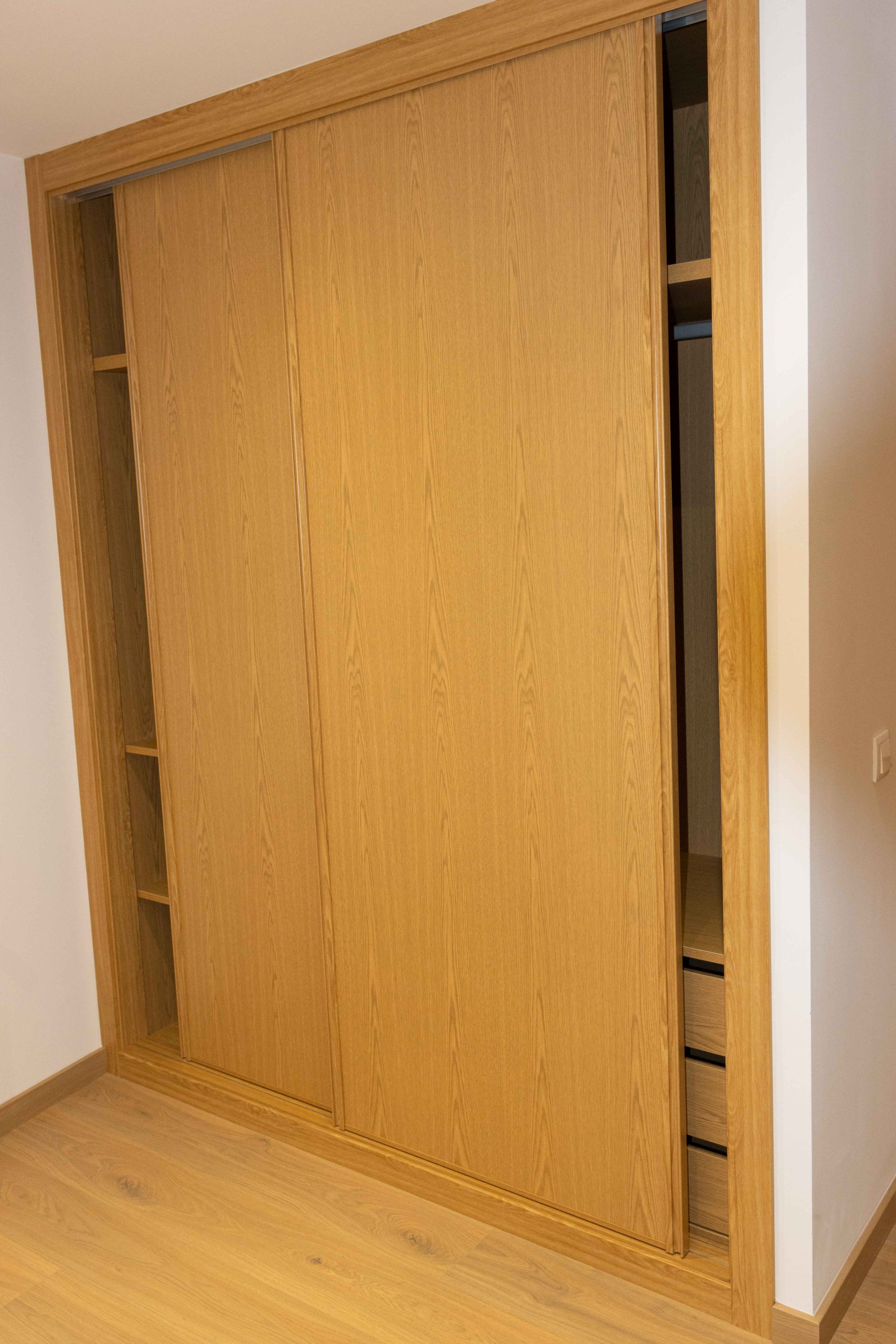Armarios a medida: armario empotrado con portas corredeiras e distribución interior optimizada.