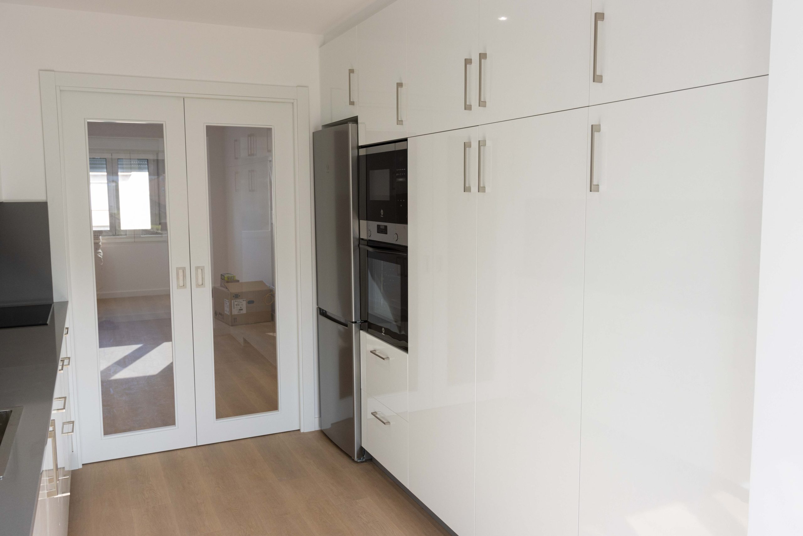 Por último, executouse unha cociña completamente nova, con mobiliario en branco de grande capacidade, integración de electrodomésticos e unha distribución pensada para o uso diario. O conxunto do proxecto deixa unha vivenda lista para entrar a vivir, cunha mellora evidente na calidade percibida, orde e confort.